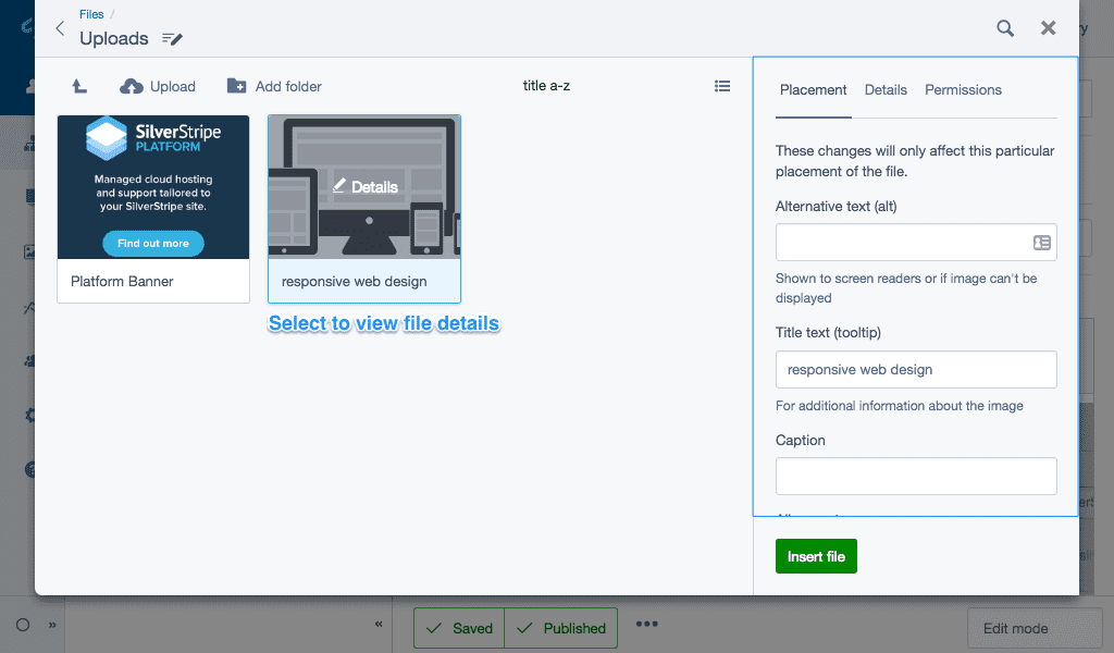 In addition, you may also want to add Title text for your image. Title text is for additional information about your image, such as the name of the photographer, or the date when it was taken. The title text appears as a tooltip when the user hovers over the image.