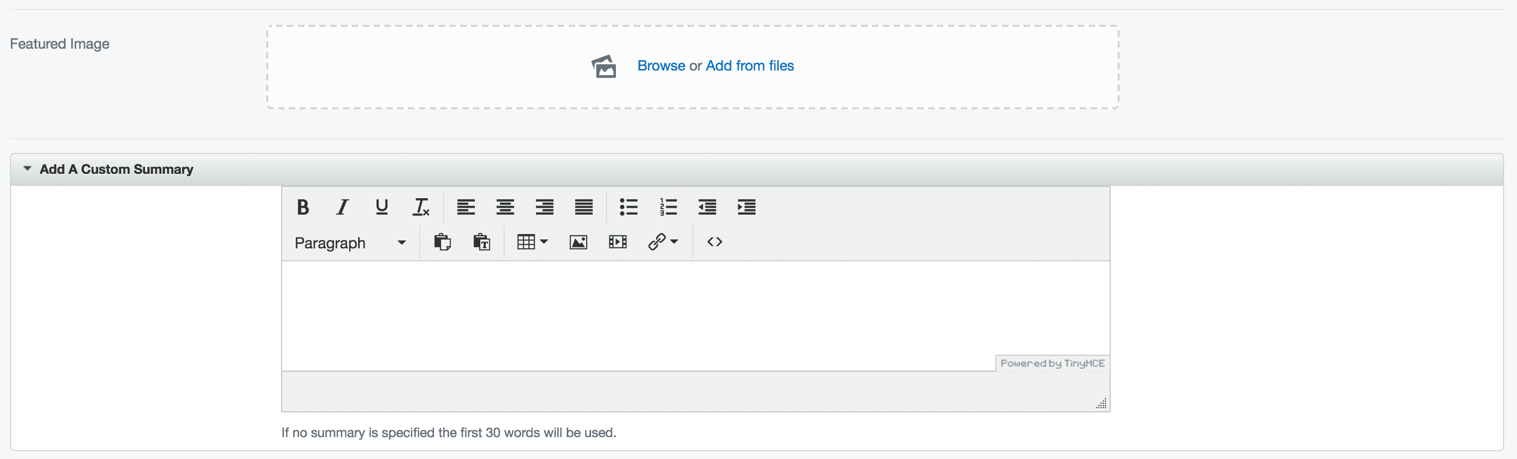 You can also include a banner images and a custom summary description (if this is omitted the first 30 words of your post content will be used when displaying your posts's abstract).