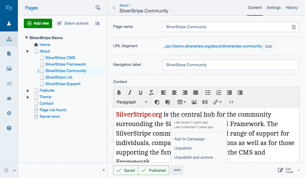 Once you have reviewed the content in a campaign and are ready to publish it, click the button Publish campaign, you will then be asked to confirm your publish action. Once a campaign is published the campaign will remain but all of the items which were either Draft or Modified will be published.